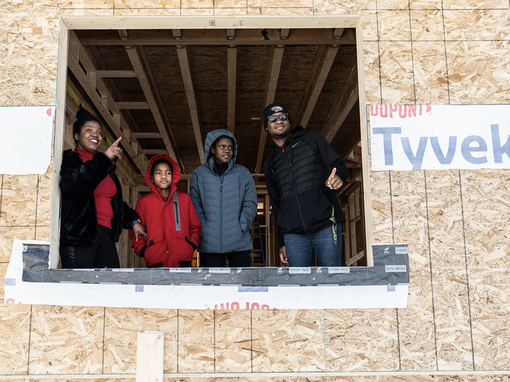 Tenesha, left, and Shevaar Smith, right, visit their home being built in Woodhaven Pointe with their children Shevaar Jr., 8, and Jheanee, 12. WALTER TYCHNOWICZ, POSTMEDIA CONTENT WORKS